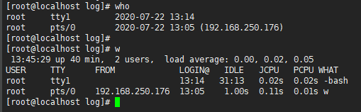 1 | who //查看当前登录用户(tty 本地登陆 pts 远程登录) |