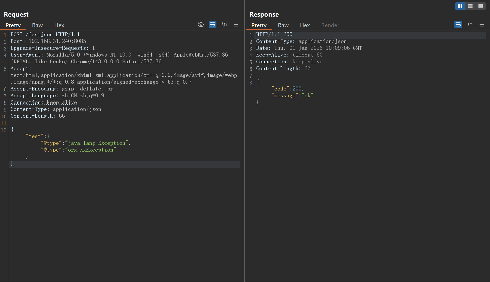 | {"test":{"@type":"java.lang.Exception","@type":"org.XxException"}}